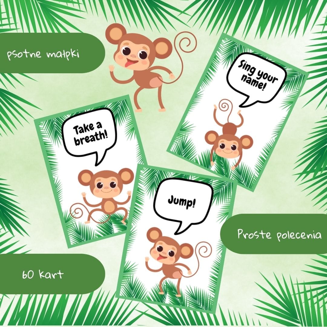 – 60 małpich kart z prostymi poleceniami